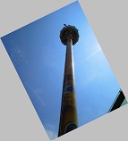 また、縦に細長いビルや塔を撮影するとき、周囲が空で注目すべき変化がない限りは、ビルや塔付近の情報が重要と思い、それを対角線を縦にして収めるのだと思う。